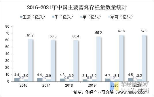 2016-2021年中國主要畜禽存欄量數量統計